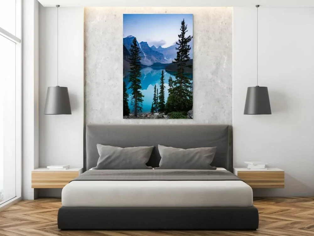 Nature photography has a unique ability to soothe. In your bedroom, choose a peaceful landscape that brings a sense of stillness—like a dawn-lit lake or forest in morning fog. These visuals help slow the mind and create a restful atmosphere.